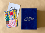 Farah Alimi assembles a series of 4×6-inch postcards drawn from recollection and the intimate rhythms of indoor life in her hometown. Reproduced from her original oil pastel works and printed on archival paper, the images translate her practice into a collectible, tactile form. Housed within a velvet box engraved with “Damascus,” the collection becomes both container and keepsake—a meditation in place. These small-scale works preserve personal and cultural moments with delicacy, where memory and image gently dissolve into one another.